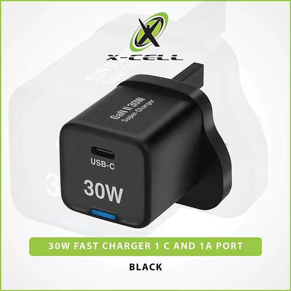 XCELL A/C HOME WALL CHARGER 30W GAN 1C PORT BLACKXCELL A/C HOME WALL CHARGER 30W GAN 1C PORT BLACK