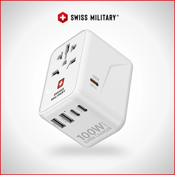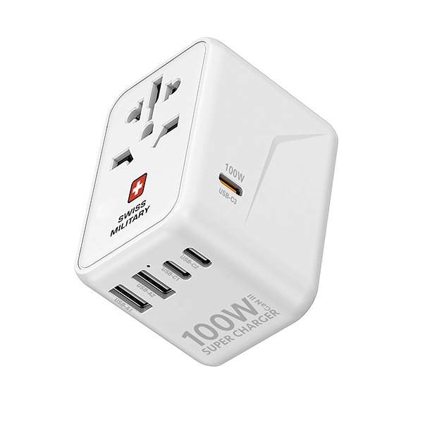 SWISS MILITARY INTERNATIONAL TRAVEL CHARGER 100W GAN – WHITE WITH CABLESWISS MILITARY INTERNATIONAL TRAVEL CHARGER 100W GAN – WHITE WITH CABLE