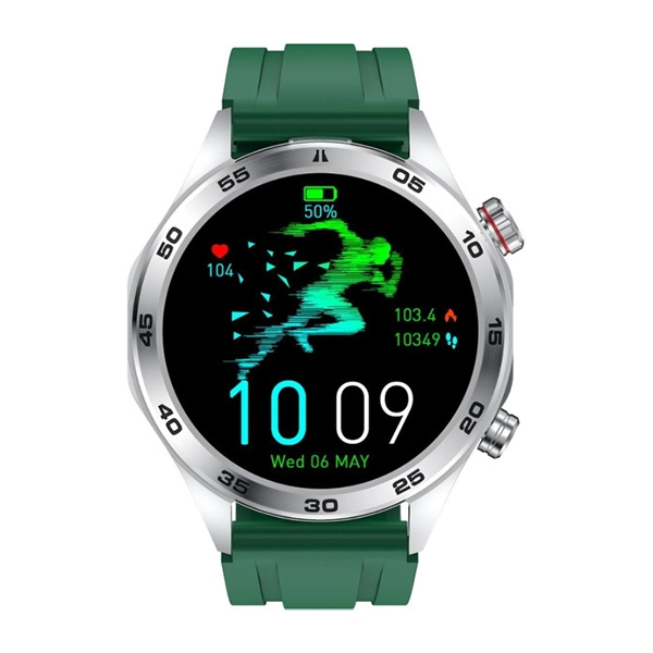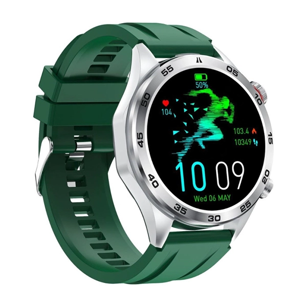 XCELL ELITE 5 SMARTWATCH SILVER FRAME GREEN SILICONE STRAP